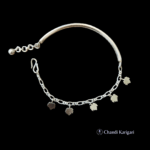 This half bangle and half chain bracelet gives a dual look. The tiny Chinar leaves hanging from the chain gives a delicate look to the bangle. It is light-weight, and can be a perfect gift.