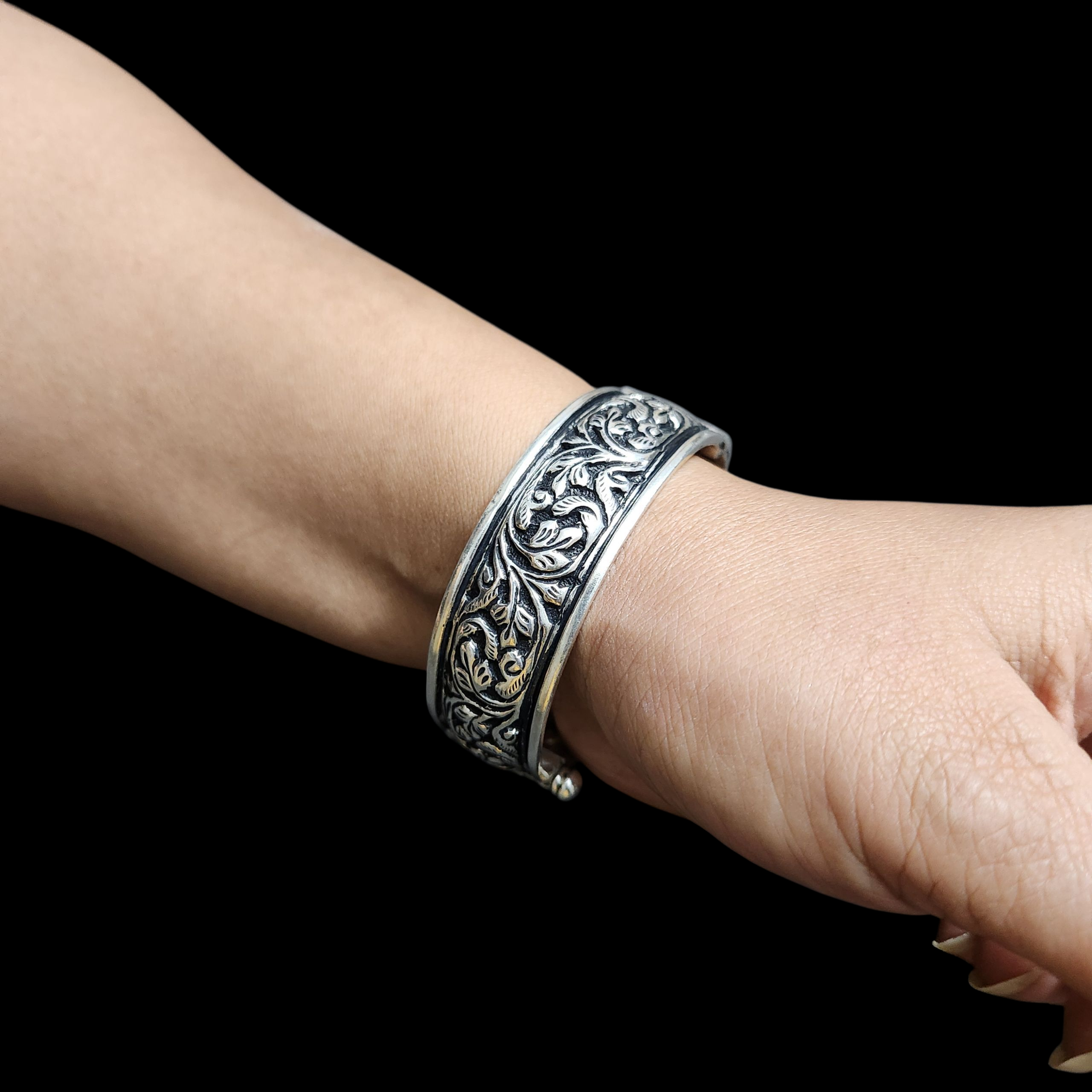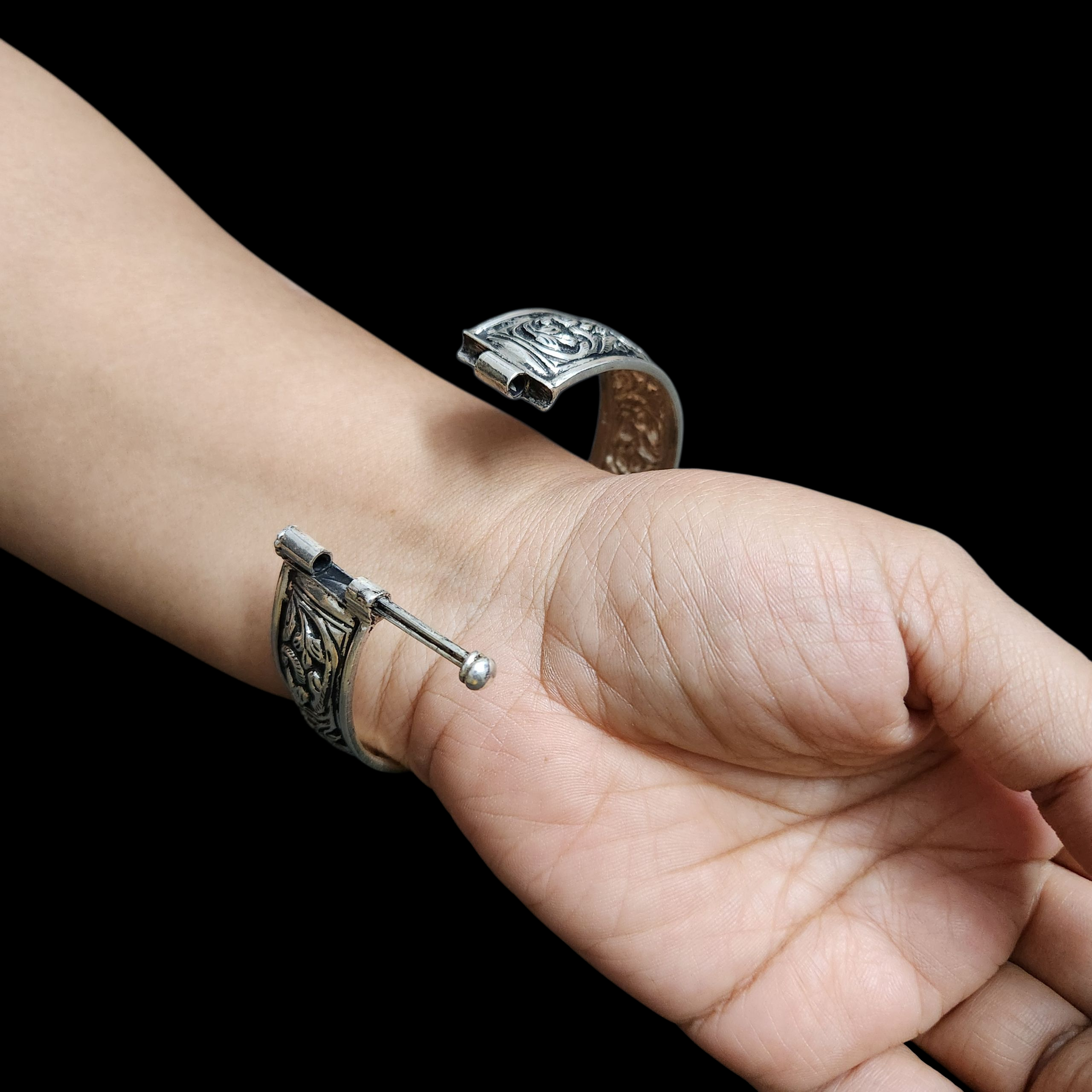 These traditional Chittai Kadas have an ornate look. These are from the the Udaipur region of Rajasthan and also from Gujrat. These kadas are heavy and makes the wrist look beautiful. Since it is openable, it will fit size 2.4 to size 2.5.