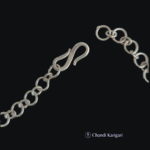 This double layered chain is a beauty. The triangular joints have been made flat so that it sits well on the neck. It looks elegant and sober. It is perfect for gifting and suits all age groups. Goes well with Indian as well as western wear.