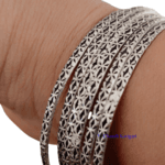 These thin, light weight bangles with criss cross design are handmade and give a modern look. These can we worn in pairs or dozens. They go well with Indian as well as Western outfits. The price mentioned is for a single piece.